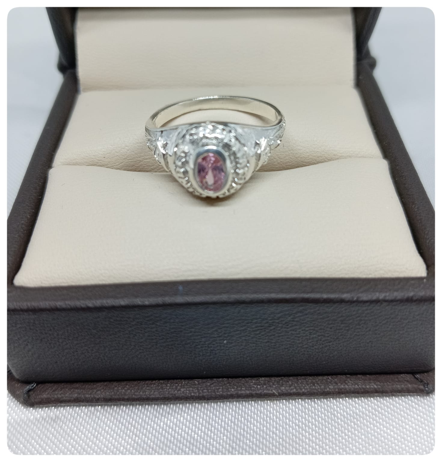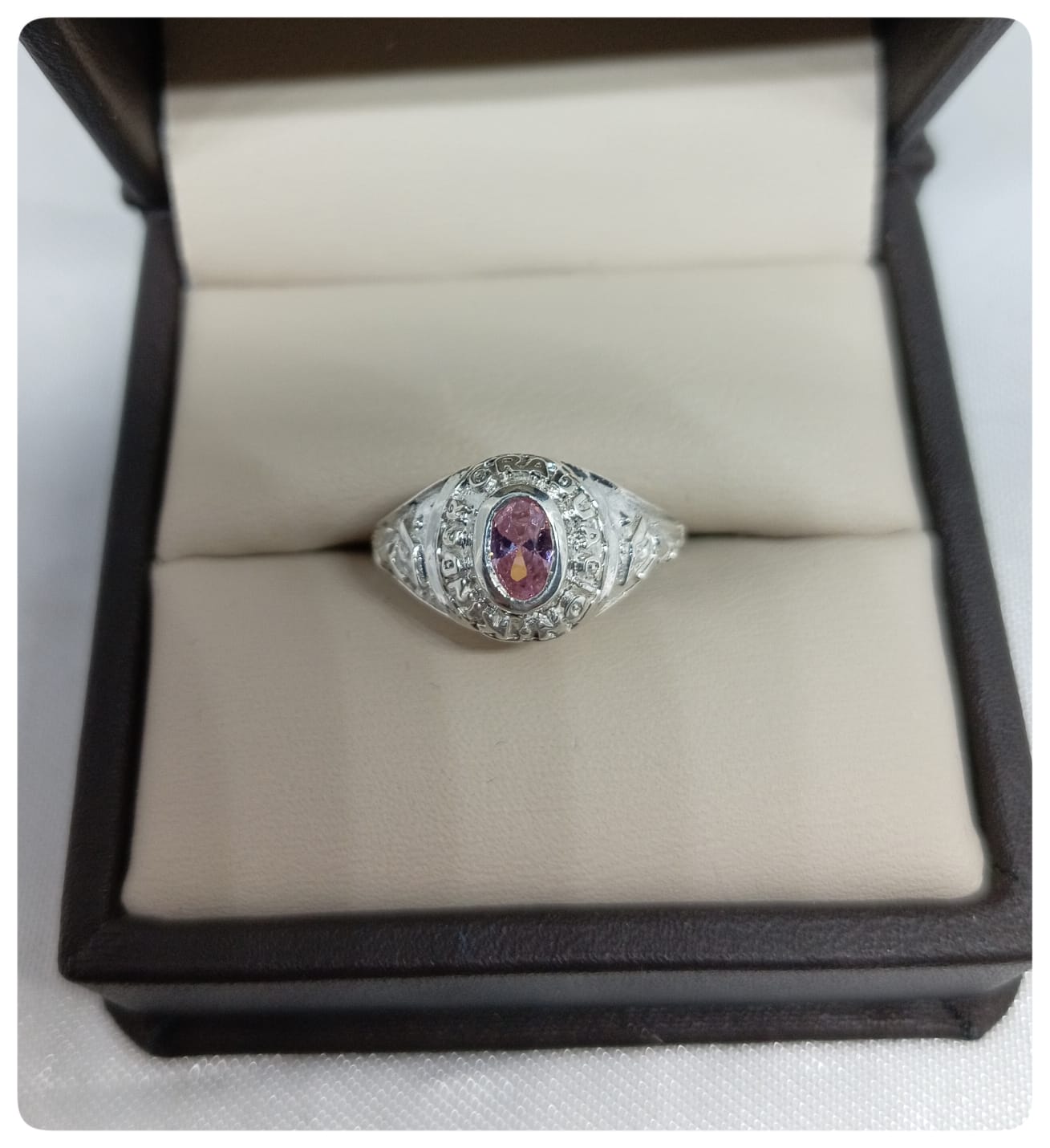Anillo Graduacion Kinder Piedra Rosada – Plata – Code AKR04 – Cotizar segun talla