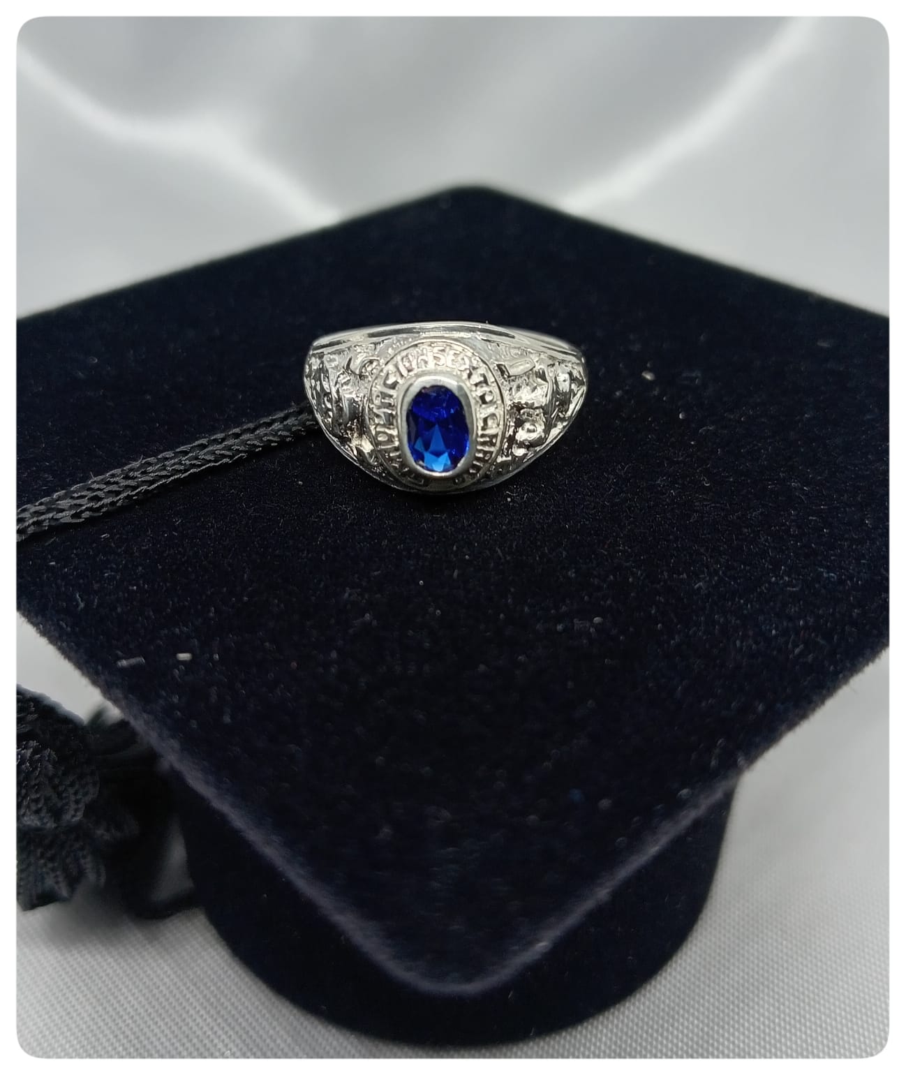 Anillo Graduacion Sexto Piedra Azul – Plata – #6 1/2– Code G05P